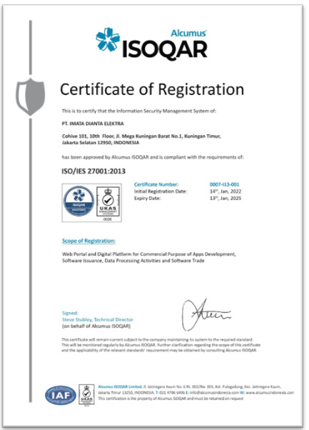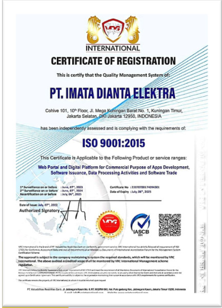 Semua data profiling klien kami 100% aman karena PT IDE sudah memperoleh ISO 27001 untuk keamanan informasi dan ISO 9001 untuk manajemen mutu. Sehingga platform dan program yang kami keluarkan memiliki sertifikasi mengenai keamanannya.